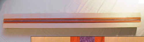 Neck laminate pieces: maple - padouk - purplehaert - padouk - maple